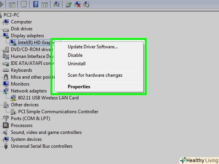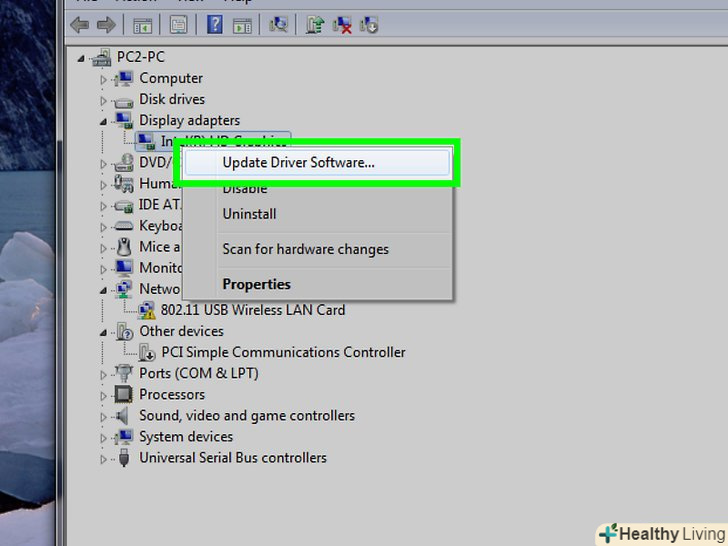Клацніть правою кнопкою миші на імені відеокарти.відкриється меню.- Якщо на комп'ютері є кілька відеокарт, клацніть правою кнопкою миші по імені тієї, драйвери якої хочете оновити.