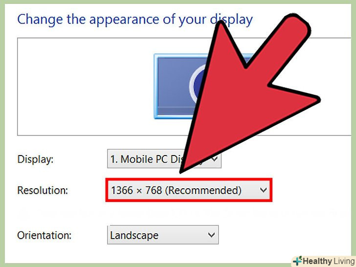 Змініть роздільну здатність екрана.це також можна зробити, якщо натиснути на стрілку спадного списку під пунктом "дозвіл". Чим більше будуть цифри, тим більше "зменшеним" буде зображення на екрані. Після того як ви зміните Дозвіл екрану, потрібно буде підтвердити ці зміни.