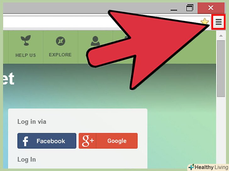 Знайдіть значок меню.[1] на ньому зображені три горизонтальних лінії, і знаходиться він за замовчуванням у верхньому правому куті вікна браузера. Якщо ви нікуди не переміщали його, то він повинен бути після адресного рядка.