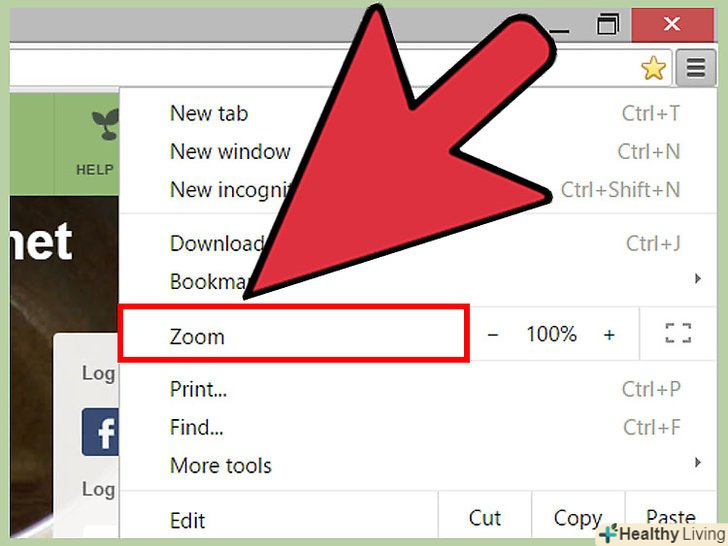 Знайдіть пункт "Масштаб". Він знаходиться приблизно в середині меню. Ви побачите кнопки - і +, також поточний відсоток масштабування.