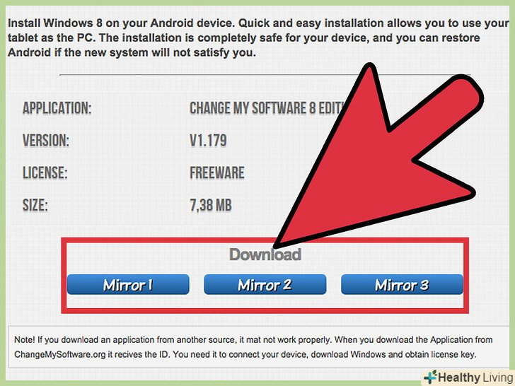 Установка Windows 8 на планшет Android дозволить вам використовувати додатки, ексклюзивні для Microsoft Windows, а також забезпечить зовнішній вигляд і функції Windows 8. Windows 8 можна встановити на Android за допомогою програми Change My Software на будь-якому комп'ютері з ОС Windows.