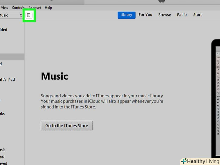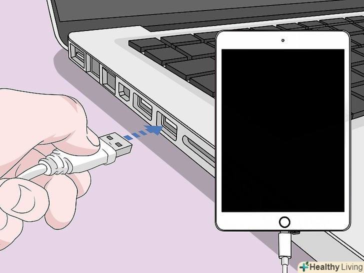 Підключіть iPad до комп'ютера за допомогою USB-кабелю.використовуйте кабель, що поставляється з iPad (або аналогічний). Через кілька секунд у верхньому лівому кутку iTunes (праворуч від меню, що випадає) з'явиться значок у вигляді iPad.[4]