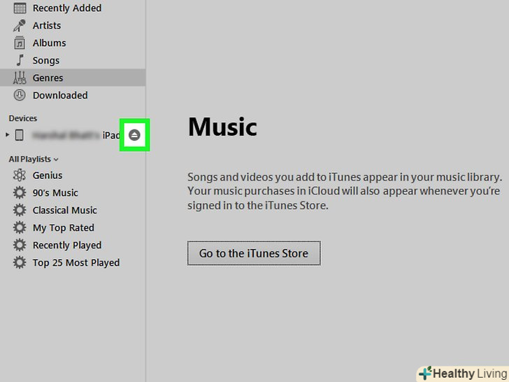 Натисніть «Витягти».ця опція знаходиться поруч з ім'ям iPad в лівому верхньому кутку iTunes. Ліва панель закриється - тепер iPad можна відключити від комп'ютера.