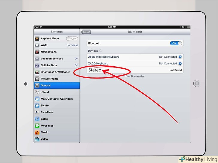 В iPad в меню Bluetooth виберіть модель вашої магнітоли або автомобіля. вона повинна відобразиться в списку доступних пристроїв.