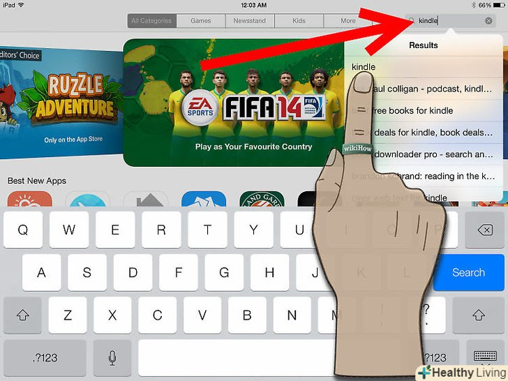 Введіть 'Kindle' в рядку пошуку в правому верхньому куті вікна AppStore, і натисніть Пошук.