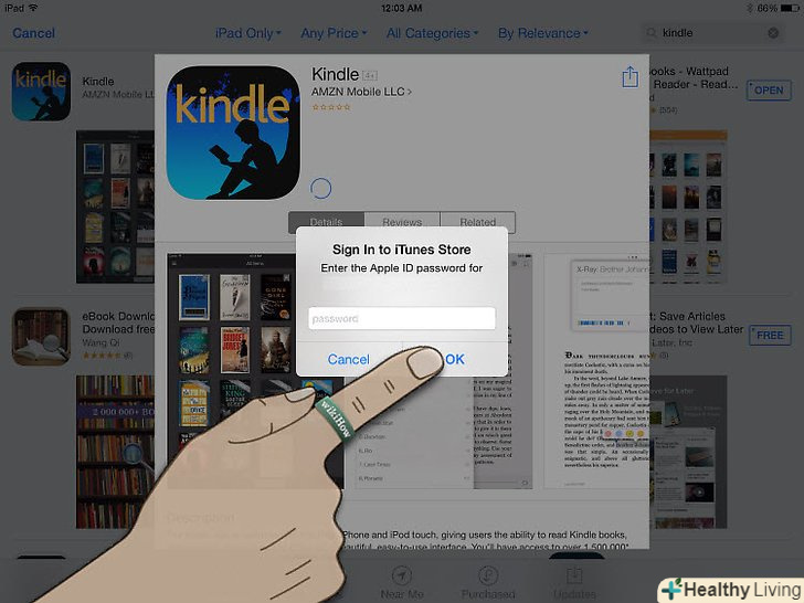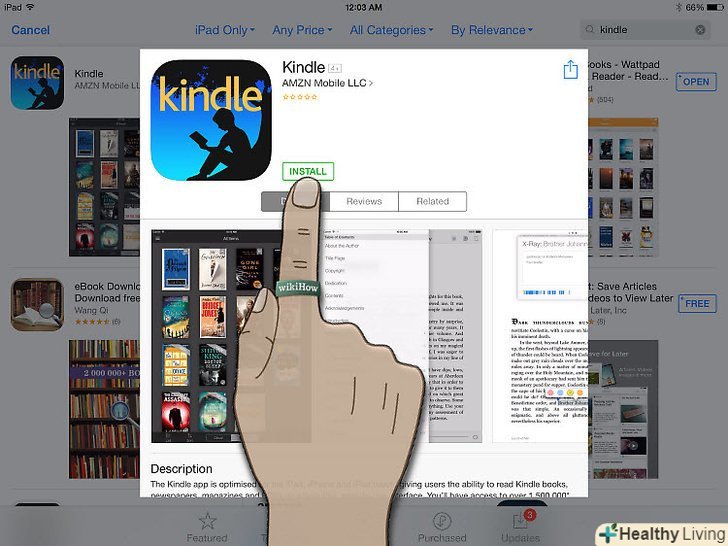 Натисніть кнопку безкоштовно поруч з додатком Kindle в розділі додатків для iPad, потім натисніть встановити.