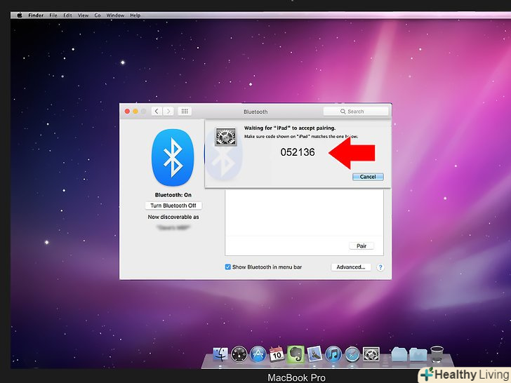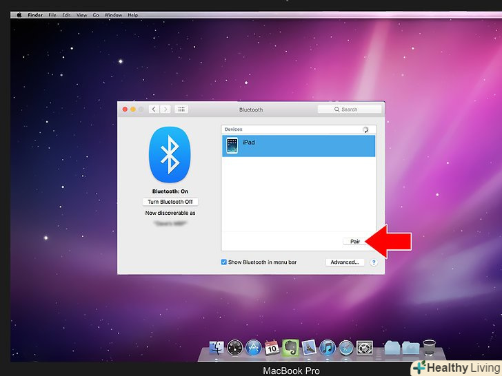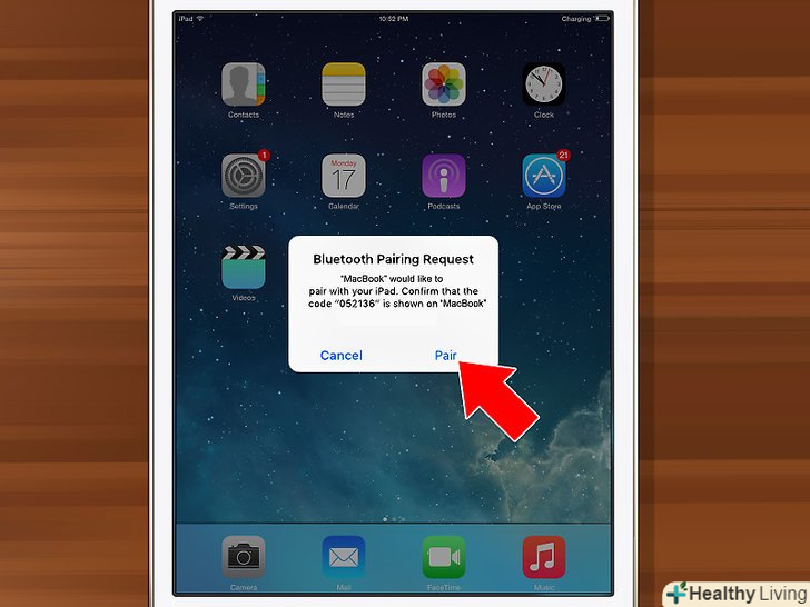 Клацніть поСполучення.ця опція знаходиться праворуч від імені iPad. Почнеться процес сполучення iPad з комп'ютером.- Для деяких моделей iPad і комп'ютерів Mac цього достатньо, щоб з'єднати планшет і комп'ютер.