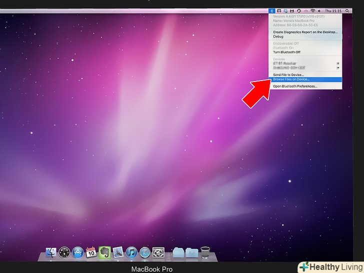Клацніть по «Bluetooth»на комп'ютері.ця опція відобразиться праворуч у рядку меню. Розкриється меню.
