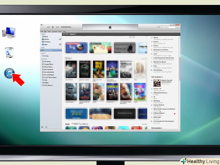 Запустіть iTunes на комп'ютері.якщо iTunes не відкрився автоматично, двічі клацніть по значку у вигляді різнобарвної музичної ноти.- Якщо на комп'ютері немає iTunes, встановіть його.