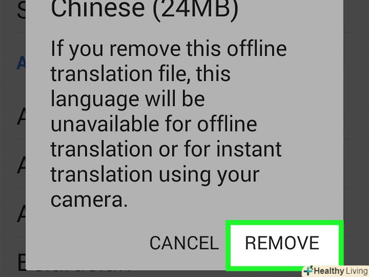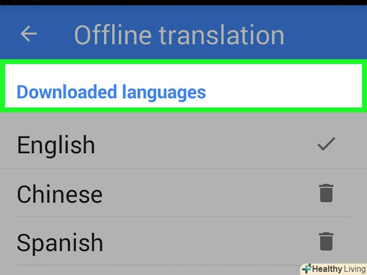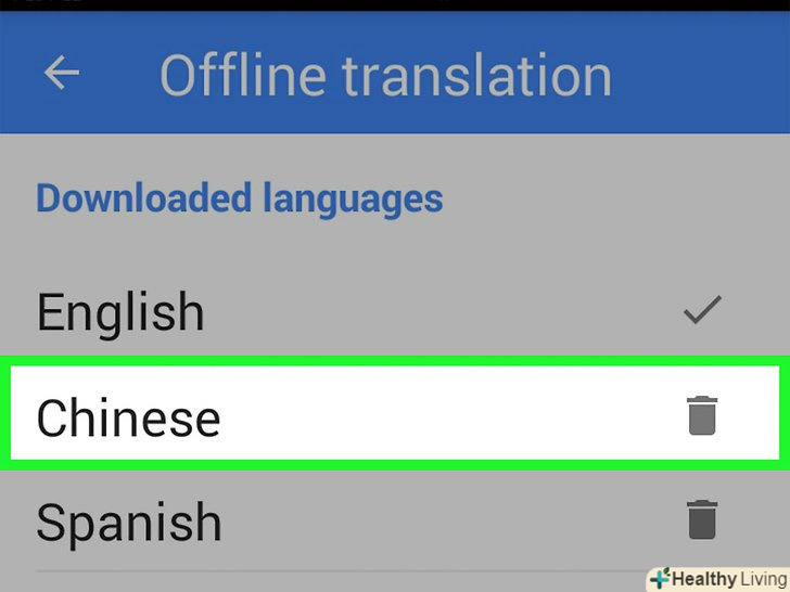 Щоб видалити з пристрою файли мовного пакету, натисніть на кнопку видалення праворуч від мови.ця кнопка виглядає як сміттєвий кошик. Видалення з пристрою непотрібних вам мовних пакетів дозволить вивільнити на ньому простір.[1]