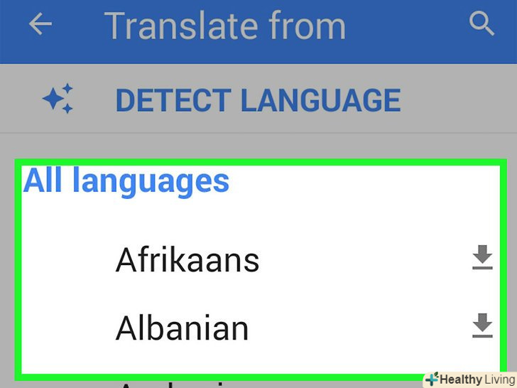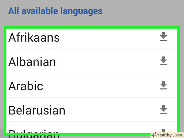 Прокрутіть список мов, щоб знайти потрібну мову для скачування.зверніть увагу, що "Google Перекладач" підтримує не всі мови для використання в режимі офлайн.