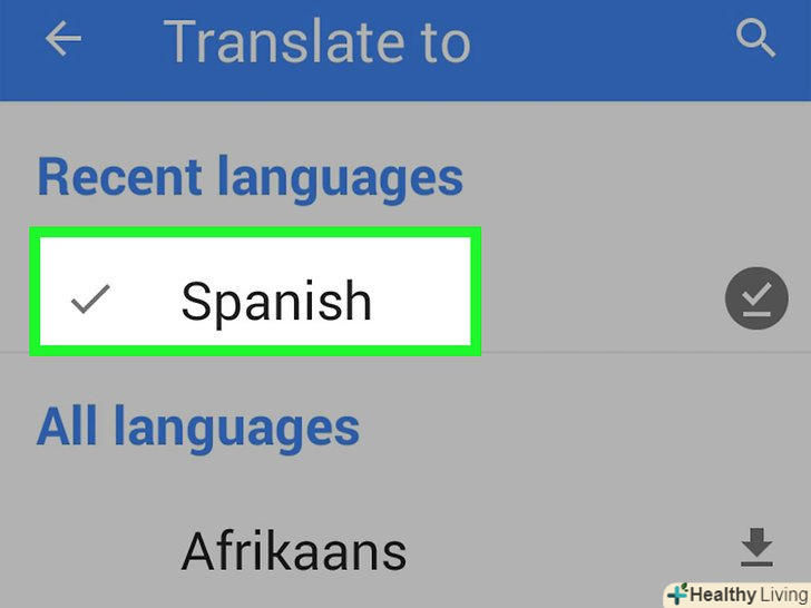 Виберіть зі списку ту мову, з якого хочете зробити переклад.якщо ви не підключені до мережі, це повинен бути один з викачаних вами на пристрій мов. Поруч зі викачаними мовами стоять галочки.