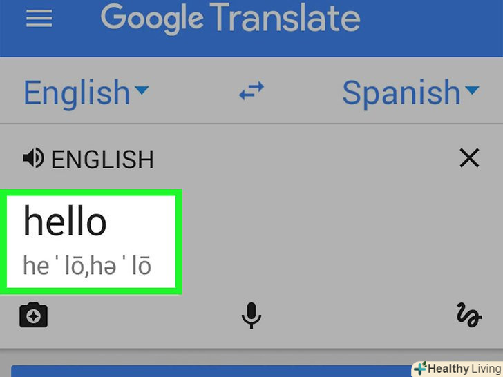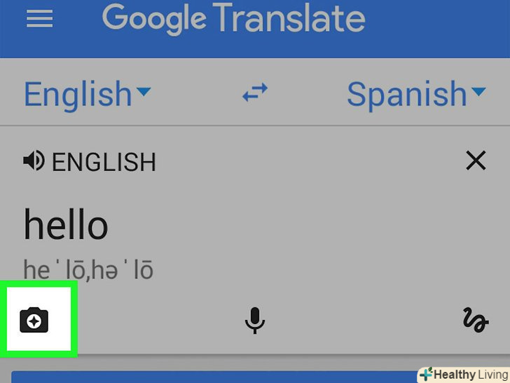 Натисніть на зображення фотоапарата, щоб одночасно сканувати і переводити написаний текст.