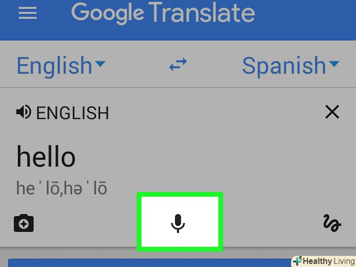 Натисніть на мікрофон, щоб говорити і одночасно перекладати.