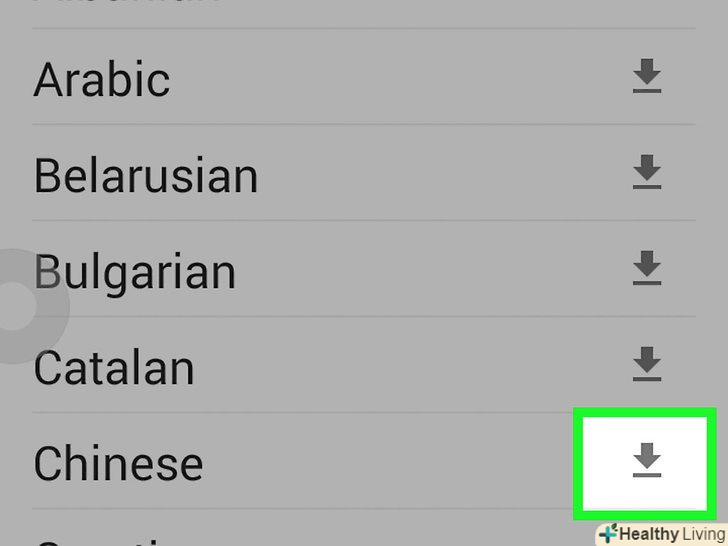 Натисніть на кнопку скачування праворуч від потрібної мови.вона буде виглядати як стрілка, що вказує вниз на горизонтальну лінію.