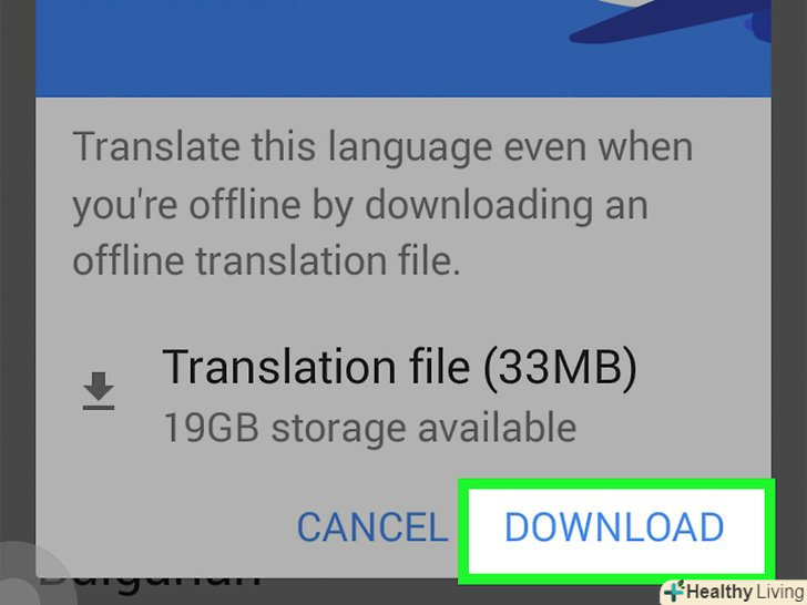 Натисніть на словоЗавантажити, щоб підтвердити скачування.ще до початку завантаження мовного пакету вам повідомлять загальний розмір скачуваних на телефон файлів.- Для скачування мовного пакету, яким ви потім будете користуватися офлайн, телефон повинен бути підключений до Інтернету.