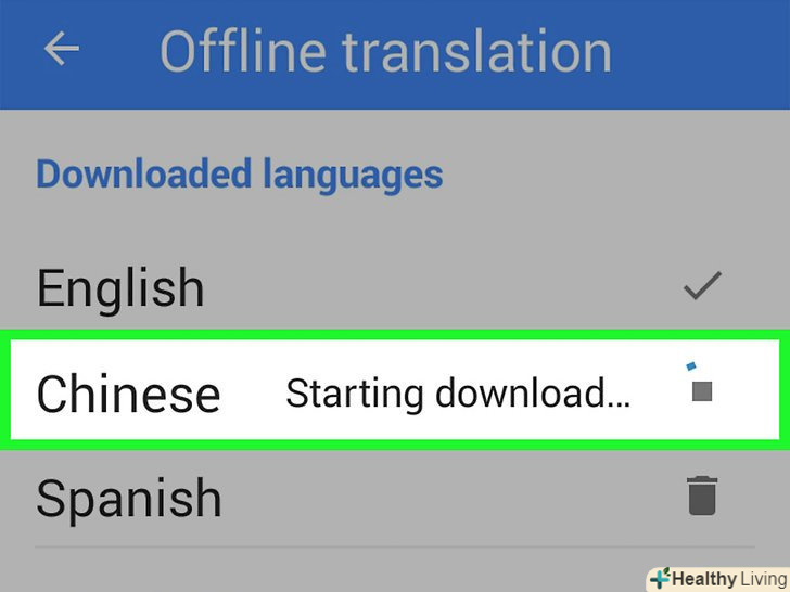 Простежте за ходом скачування. після підтвердження скачування обраний вами мову буде переміщений в групу "встановлених мов", а поруч з ним відобразиться гурток з ходом завантаження.