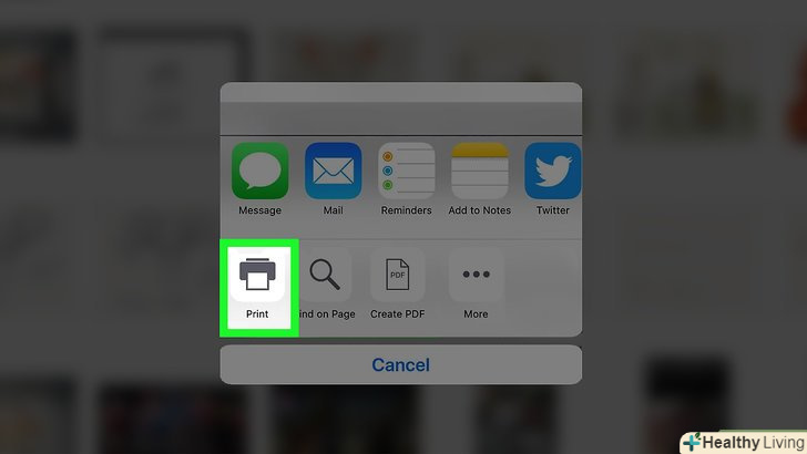НатиснітьДрук. цей значок у вигляді принтера знаходиться в нижній частині спливаючого меню. Відкриється меню "друк".- Можливо, в меню вам доведеться прокрутити (справа наліво) нижній ряд значків, щоб знайти опцію «друк».
