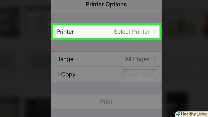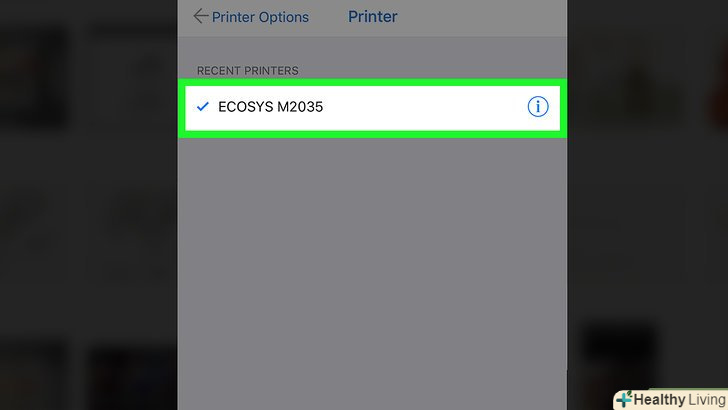 Виберіть принтер.натисніть на ім'я потрібного принтера.- Якщо ви не можете знайти принтер, переконайтеся, що він включений, підключений до бездротової мережі, не підключений до Bluetooth, не підключений до маршрутизатора через Ethernet-кабель і знаходиться недалеко від iPad.