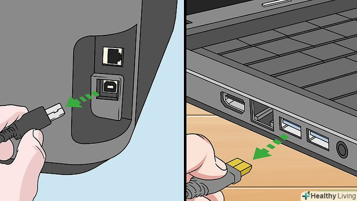 Вимкніть Bluetooth або Ethernet-кабель.щоб підключитися до принтера через AirPrint, потрібно, щоб він не був підключений до комп'ютера через Bluetooth або до маршрутизатора через кабель Ethernet.[1]- Щоб відключити принтер від маршрутизатора, витягніть кабель Ethernet з роз'єму на задній панелі принтера.