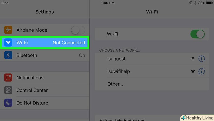 Переконайтеся, що iPad підключений до тієї ж бездротової мережі, що і принтер з функцією AirPrint.- Якщо планшет підключений до іншої мережі, торкніться імені мережі, до якої підключений принтер, введіть пароль (якщо буде потрібно), а потім натисніть «Підключитися».