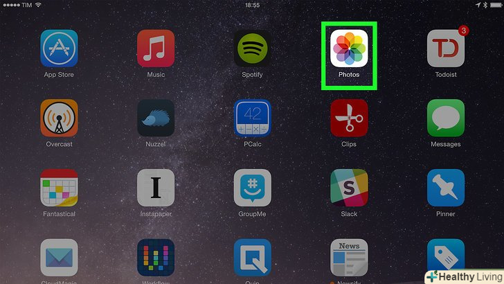Запустіть потрібну програму. натисніть на значок програми, в якому знаходиться елемент, який ви хочете роздрукувати.- Наприклад, якщо потрібно роздрукувати фотографію, натисніть на значок додатка «Фото».