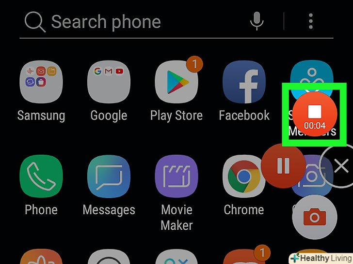 Зупиніть запис.для цього натисніть на значок програми Mobizen, а потім торкніться квадратної кнопки "Стоп". Відкриється повідомлення з питанням, що робити з записаним відео.- Натисніть кнопку "Пауза", якщо хочете призупинити запис і продовжити її пізніше.