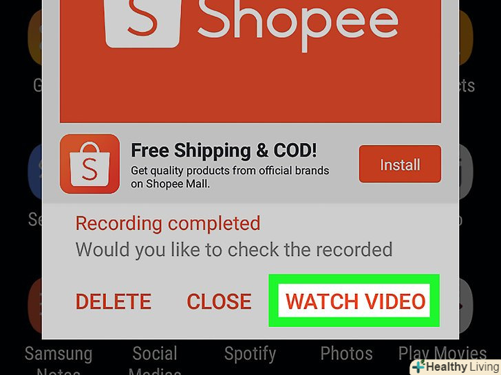 Натисніть кнопку "Стоп". вона відзначена значком у вигляді кола з квадратом, який знаходиться в нижньому лівому кутку. Запис відео буде зупинено.- Щоб переглянути відео, запустіть програму "Галерея", натисніть на папку, яка носить назву гри, а потім торкніться відео. Також ролик можна переглянути в додатку Video Launcher-для цього натисніть на значок профілю вгорі екрану, а потім торкніться «Videos Recorded» (записані відеоролики).