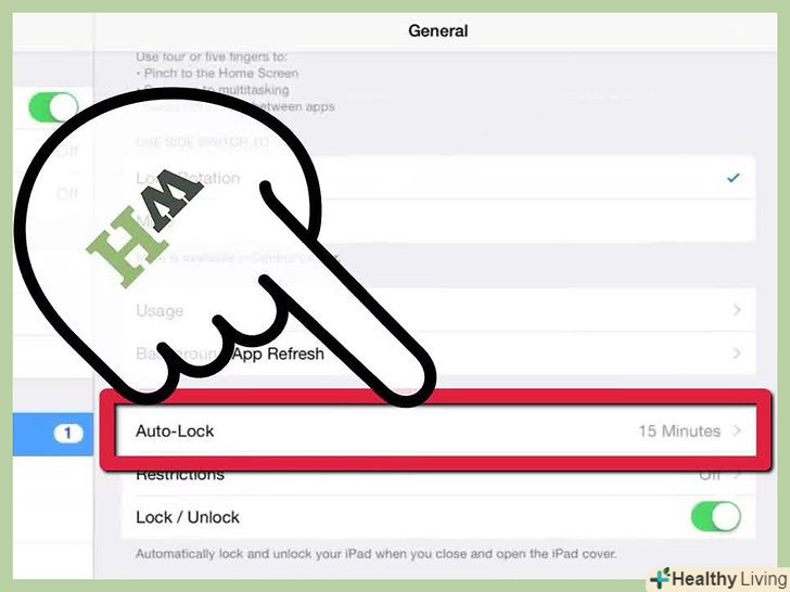 Увімкніть режим автоблокування. цей режим вимикає екран iPad після встановленого періоду часу, протягом якого iPad неактивний. Режим не відключає сам iPad, тільки екран.- Перейдіть в "Налаштування», «Основні»і включіть "автоблокування". Встановіть короткий інтервал часу, наприклад 1 хвилину.[3]