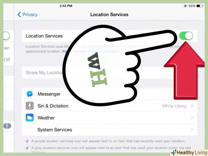 Вимкніть сервіси визначення місцезнаходження.активне використання карт та інших сервісів визначення місцезнаходження виснажує батарею вашого iPad. У включеному положенні карти постійно оновлюються, що призводить до виснаження батареї.