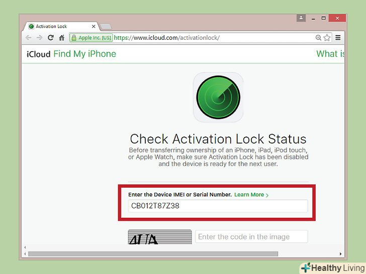 - Відкривши сайт, введіть ідентифікаційний (IMEI) номер пристрою або серійний номер його апаратного забезпечення; на екрані відобразиться інформація про те, чи включена зазначена функція чи ні. Так ви визначите, що цей планшет був очищений від даних попереднього користувача і не є краденим.