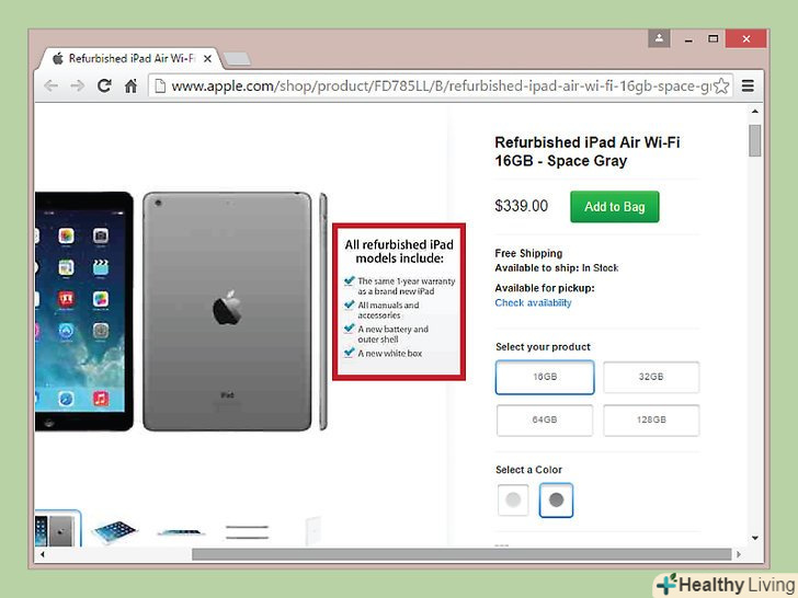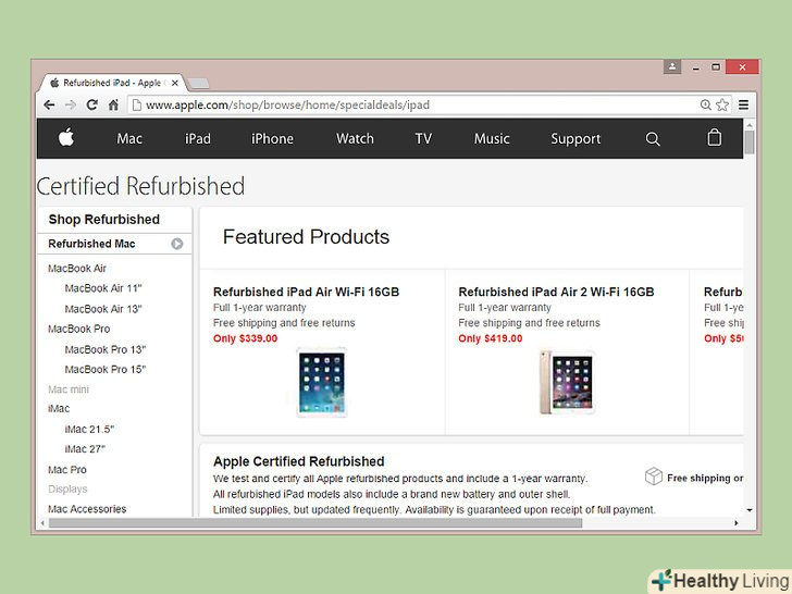 Купуйте планшет у магазині Apple. в магазині Apple продаються як старі, так і відновлені пристрої. Хоча в такому магазині ціни трохи вище, ніж у інших продавців, численні відгуки свідчать про те, що Планшети (відновлені і старі) прекрасно працюють.- Купивши планшет в магазині Apple, ви витратите трохи більшу суму, ніж планували, але за ці гроші Ви отримаєте якісний товар, який буде коштувати набагато дешевше нового пристрою.