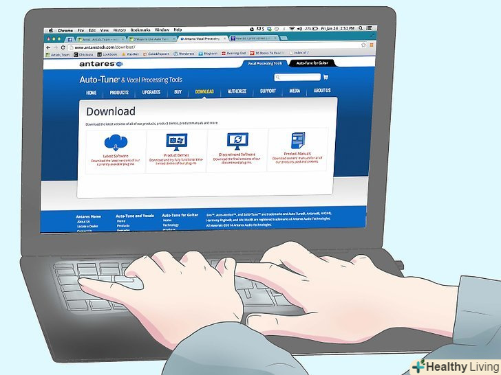 Скачайте Antares.придбайте Auto Tune У official website. Встановіть програмне забезпечення. Ви також можете вибрати з більш простих пакетів, як AutoTune EFX 2, який не включає деякі з більш складних особливостей програмного забезпечення, але це хороший варіант, якщо ви просто хочете отримати в пісні ефект T-Pain.- Антарес не з дешевих, але це програмне забезпечення використовують професіонали. Якщо ви хочете спробувати його безкоштовну пробну версію, ви можете застосувати його в декількох записах і подивитися, чи зацікавлені ви в оформленні покупки.