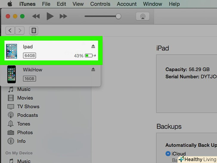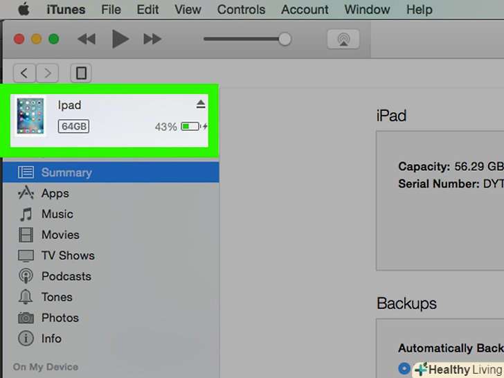 Клацніть по значку iPad. він знаходиться у верхній лівій частині вікна під панеллю інструментів.