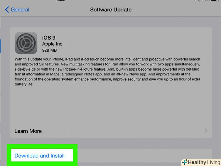 НатиснітьЗавантажити та оновити.iTunes автоматично завантажить і встановить оновлення.- Не відключайте iPad від комп'ютера під час процесу завантаження і установки.[1]