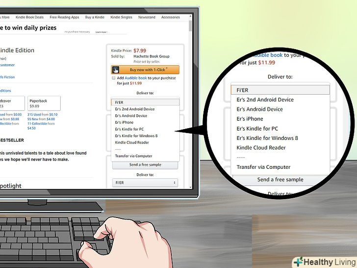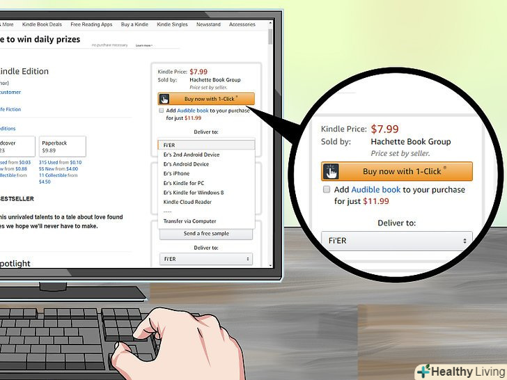 Натисніть "Купити".ви побачите помаранчеву кнопку у верхньому правому куті екрана над Вашим пристроєм. Як тільки ви його виберете, покупка буде відправлена і доставлена на ваш Kindle Fire.