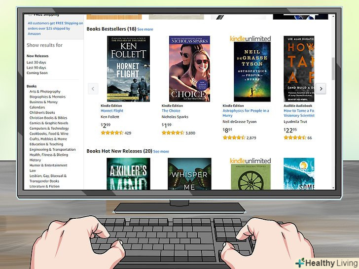 Вивчіть книги. ви можете ввести в поле пошуку назви книг або вибрати " Kindle "у верхній частині екрана і переглянути книги за категоріями, наприклад," рекомендовані"," бестселери "або"жанри".