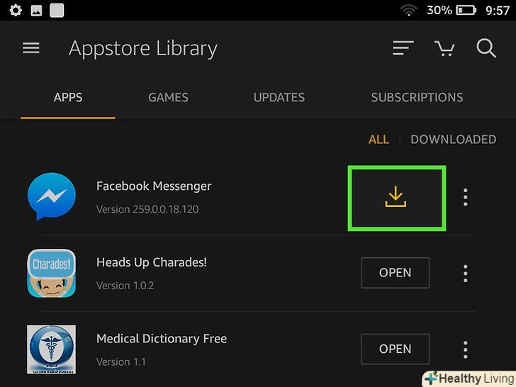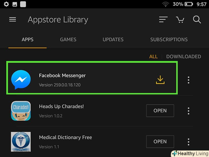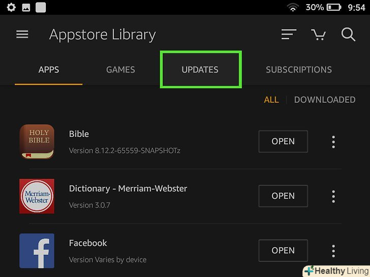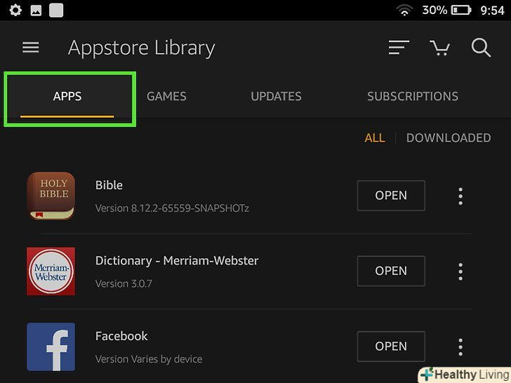 Виберіть розділ " My Apps "(Мої програми), щоб перейти до списку своїх додатків.- На деяких моделях Kindle Fire цей розділ може називатися "App Updates" (оновлення додатків).