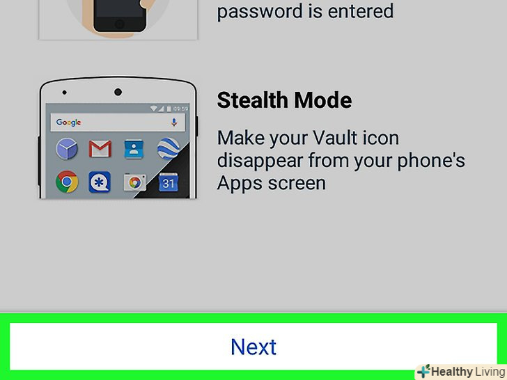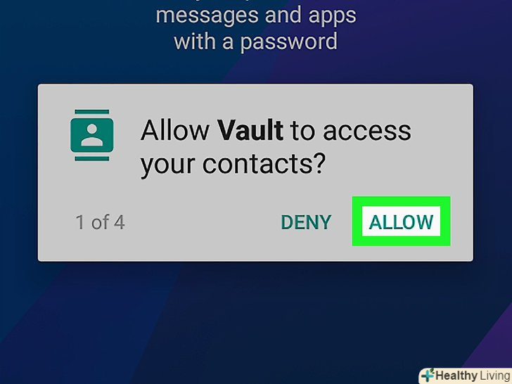 Запустіть Vault.для цього натисніть "Відкрити" на сторінці цього додатка в Play Маркеті або торкніться значка Vault на панелі додатків.