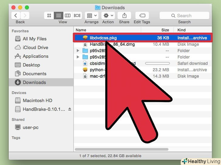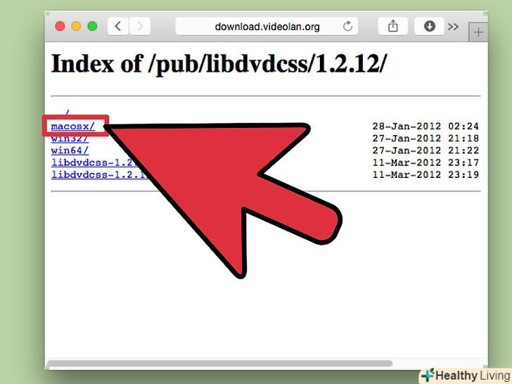 Скачайте файл libdvdcss, щоб обійти шифрування DVD.інформація на більшості DVD-дисків з фільмами зашифрована, щоб запобігти їх копіювання. Файл libdvdcss дозволить програмі Handbrake обійти це обмеження на копіювання фільмів з DVD-дисків. Ви можете завантажити цей файл з сайту download.videolan.org/pub/libdvdcss/1.2.12/. Виберіть версію файлу, відповідну вашій операційній системі.[1]