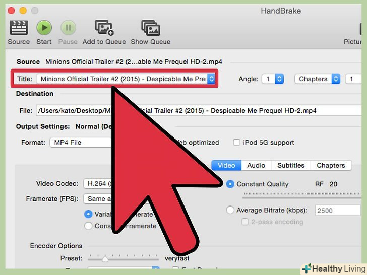 Виділіть потрібний заголовок.якщо на DVD-диску записані широкоформатна і повноекранна версії фільму, ви можете вибрати потрібну версію в меню "Назва". Розділ "розмір «на вкладці» фільм" допоможе вам не переплутати версії фільму.