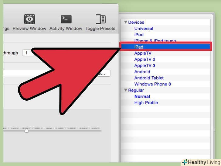 У списку» попередні налаштування "виберіть " iPad".це автоматично налаштує процес перетворення на перетворення у формат, підтримуваний iPad. Якщо ви не бачите списку «попередні налаштування», натисніть «перемикання між попередніми настройками».