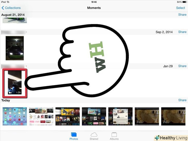 Натисніть на назву альбому, в якому знаходиться потрібне вам відео, на вкладках у верхній частині екрана.