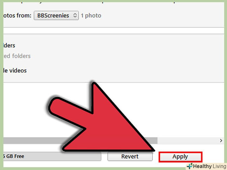 Синхронізуйте iPad.як тільки ви закінчили Налаштування вибраних фотографій, натисніть кнопку Синхронізувати. iTunes синхронізує ваші фотоальбоми, видаливши всі вибрані вами з ipad ' s storage.[1]
