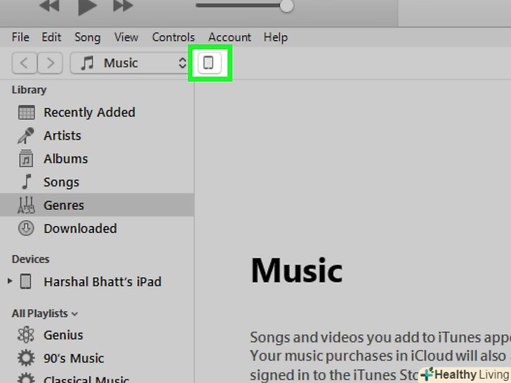 Натисніть на значок iPad в iTunes.ви знайдете його у верхній частині вікна поруч з меню медіатеки.