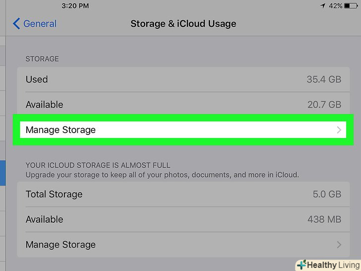 Зареєструйтеся на iTunes Match.медіа-файли займають значну частину пам'яті вашого пристрою. iTunes Match-це платний сервіс Apple, який дозволяє обмінюватися медіатекою iTunes з iPad (або з будь-яким іншим пристроєм Apple, або з комп'ютером). Так ви зможете звільнити пам'ять, позбувшись від медіа-файлів, що зберігаються у вашому iPad. Прочитайте цю статтю для отримання докладних інструкцій.[3]- У сервісу є недоліки. Він коштує $ 25 на рік, і ви можете користуватися тільки потоковою передачею даних при підключенні до мережі. Тому заздалегідь скачайте музику на ваш iPad, щоб слухати її навіть без підключення до мережі.