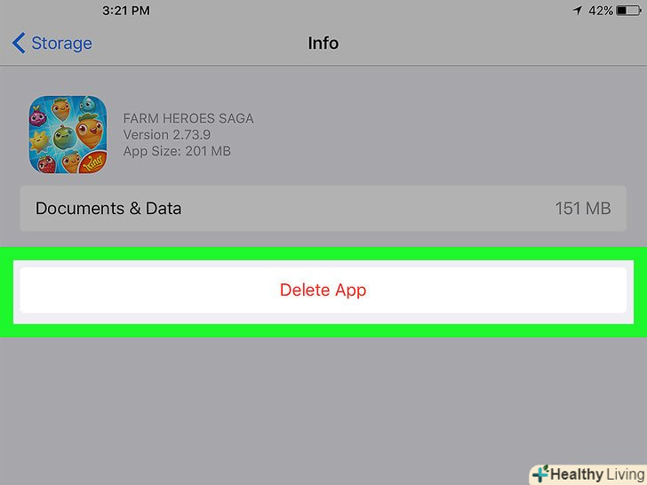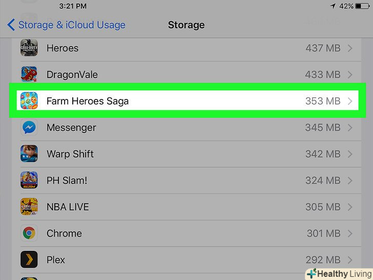 Безліч встановлених додатків займають пам'ять вашого iPad.При цьому ігри займають набагато більше вільного місця, ніж інші програми. Для звільнення пам'яті просто видаліть невикористовувані ігри та інші програми.- Ви можете видалити програми з головного екрана, але описаний тут метод дозволить вам упорядкувати додатки за їх розміром і побачити, скільки пам'яті займає кожен додаток.
