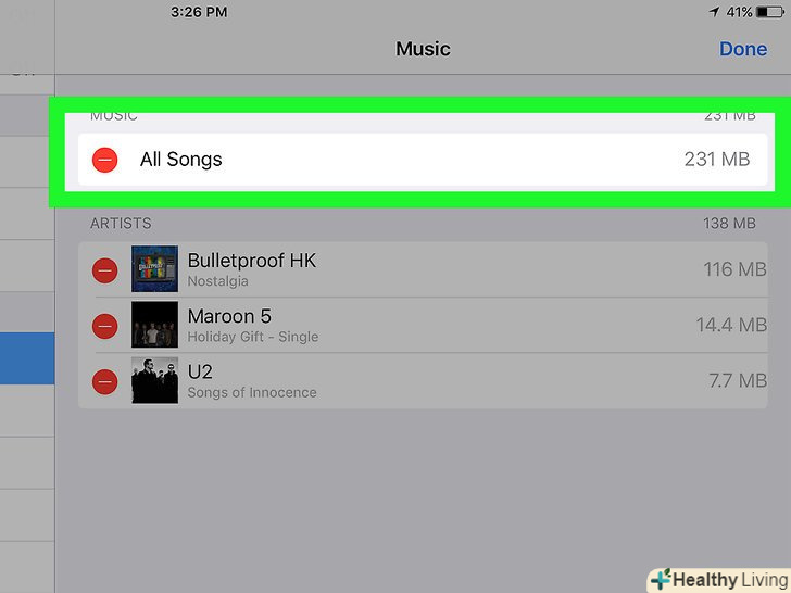 - Натисніть на " - "поруч з" Всі пісні«, а потім натисніть»Видалити".