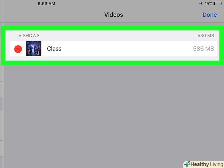 - Відобразиться список всіх відеофайлів (з їх розмірами), що зберігаються у вашому iPad. У разі ТВ-шоу буде відображатися розмір кожного епізоду.