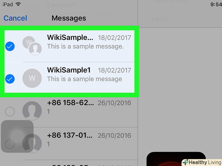 Клацніть по кожному видаляється розмови, щоб виділити його.- Коли ви видаляєте розмову, всі повідомлення і зображення всередині нього будуть видалені. Тому запишіть важливу інформацію і збережіть фотографії.